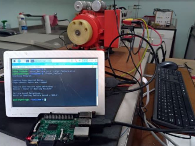 In this study, a new measurement system was developed to determine failures and to define the level of failure that may occur in bearings and rotor bearings or in foot of motor in single phase capacitor start motor. In the system, the vibratory operation of the motor is provided by connecting different screws on the motor’s rotor mounted flywheel or by gradually removing the nut bolts of motor foot. The VB3 vibration sensor outputs were recorded to the computer with LabVIEW program at 1 ms intervals for one minute. The changing characteristics of sensor output for each experiment had more than one frequency component; therefore, Fast Fourier Transform (FFT) was performed for determining such components. When the obtained FFT graphs were analyzed, it was determined that the vibrations had harmonics of 50 Hz and its multiples; and it was observed that the frequency and amplitude values of first 5 harmonics could be used for determining the presence, type and level of failure but there was a nonlinear relation between each other. Therefore, 2 different artificial neural networks (ANN) customized separately were developed for determining the type and rate of the failure of motor. 80%, 10% and 10% of available data were reserved for training, testing and verification, respectively, and the ANN was trained. Accuracy degree for the ANN in the estimations following the training stage was calculated as R = 0.97–0.98. Furthermore, the results of ANN were compared with the results obtained using Sequential Minimal Optimization, Naive Bayes (NB) and J48 algorithms; and it was determined that the accuracy degree of ANN was higher. After this, a program was developed in MATLAB in order to work 2 ANNs with highest success together. Lastly, a system consisting of Raspberry Pi and a 7″ LCD screen, similar to the multimedia system in cars, was created to use at industrial applications. |