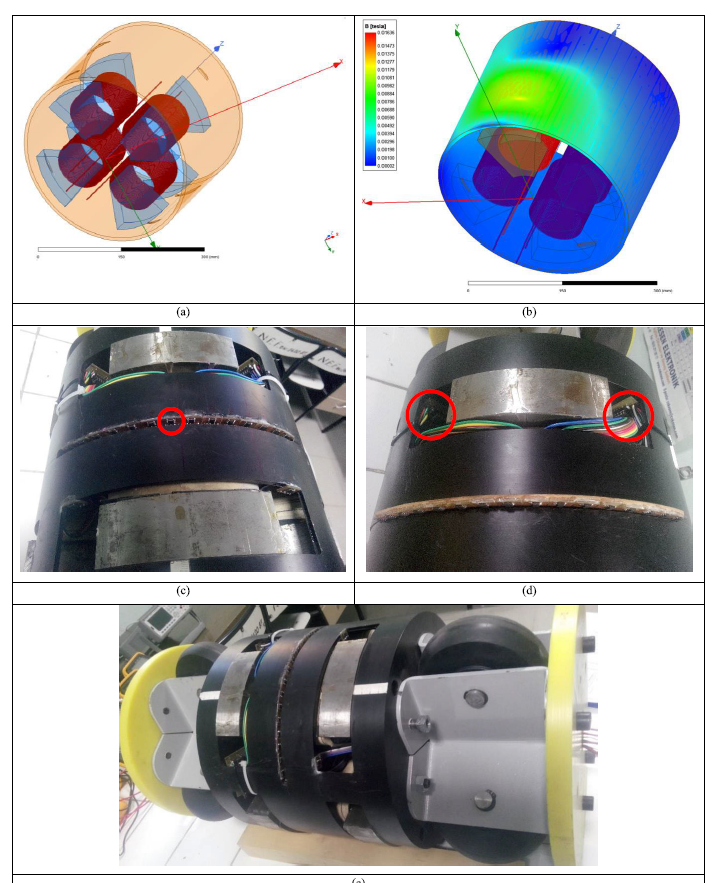 Today, natural gas and oil, called main energy sources, are transported by pipelines M long distances. Defects (corrosion, cracks, dents) in the buried pipelines can cause loss of life, environmental pollution and economic loss. Recently, devices called “Pipeline Inspection Gauge (PIG)” are used for non-destructive evaluation (NDE) of defects in pipelines. In these devices, the magnetic flux leakage (MFL) technique comes into prominence as the inspection method. However, when the literature is examined, a study that examines the speed variable for defect detection has not been found. In this study, two new PIGs which can be used to investigate the speed variable while determining defects in pipelines are designed. For these new designs, a new magnetic measurement system with KMZ51 AMR sensors is developed. The voltage values of the sensors in the measurement system are saved to the computer by using LabVIEW-based software in sequential order via the NI USB-6210 data acquisition card. This data is also displayed on LCD screens by using MyRIO 1900. In the article, the mechanics of the developed system, its electronics and its software are examined in detail. Moreover, the usability of these new designs in determining pipeline defects are examined through an example experiment result with the Origin analysis program. |