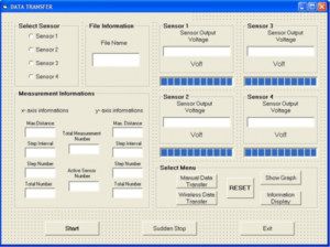 All the sensors such as temperature, humidity, and pressure used in industry provide analog outputs as inputs for their control units. Wireless transmission of the data has advantages on wired transmission such as USB port, parallel port and serial port and therefore has great importance for industrial applications. In this work, a new wireless asynchronous data communications module has been developed to send the earth magnetic field data around a ferromagnetic material detected by a KMZ51 AMR sensor. The transmitter module transmits the analog data obtained from a source to a computer environment where they are stored and then presented in a graphical form. In this design, an amplitude shift keying (ASK) transceiver working at the frequency of 433.92 MHz which is a frequency inside the so called Industrial Scientific Medical band (ISM band) used for wireless communications. The analog data first fed into a 10-bit ADC controlled by a PIC microcontroller and then the digital data is sent to the transmitter. A preamble bit string is added in front of the data bits and another bit string for achieving synchronization and determination the start of the data is used. The data arriving at the receiver is taken by the microcontroller and sent to a LCD display as well as the serial port of a computer where it is written in a text file. A Visual Basic based graphics interface is designed to receive, store and present the data in the form of graphical shapes. In the paper, all the work has been explained in detail. |