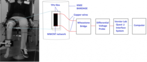 This study aimed to find out whether a wearable strain sensor including thermoplastic polyurethane composite with a multi-walled carbon nanotube network could be a viable alternative to an isokinetic dynamometer for the measurement of knee-extensor muscle strength. For the first time, the voltage-torque and angle-time relations of the sensor were determined to allow a comparison between the angle-dependent torque changes of the dynamometer and the sensor. This comparison suggested that the torque-angle relations of the dynamometer and the sensor did not have the same characteristics. In this regard, the sensor may be used in the torque measurements due to the moderate correlation between the torque values determined via the isokinetic dynamometer and the sensor and due to the significant difference between low and high torque values of the sensor. By the same token, the torque-angle graph of the sensor may be more informative than that of the dynamometer in evaluation of knee problems. |