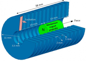 In this work, a four stage induction coil-gun has been designed and the parameters acting on the bullet velocity has been investigated. The mutual inductance variation depending on the bullet coil position, determination of firing point exposed to the maximum force with respect to the length, and appropriate material selection for the bullet coil have been analyzed. Optimum solutions for these parameters have been presented. |
